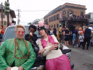 I was happy to see a few hippies around on Mardi Gras day – my friend was one, she was supposedly on an acid trip and we were her hallucination. I saw one hippy carrying a sign that said “Never Trust Anyone Over 30” – which is sort of scary to read that the census shows New Orleans has lost over 45% of its children under 18. Lesli Jacobs, optimistically says the young people moving here will have children and repopulate this city – she says, New Orleans is Woodstock to young people and I do believe she has something there as we ran into friends, young from Boston, who are here in this city trying to make things better than before.