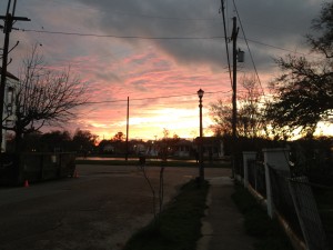 6) Here was the view as I was unloading – a completely different view from the muted hues of sunlight bouncing off the houses – now I am seeing the blazing glory of the setting sun – lovely!