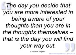 And so this is how I came to find peace, happiness and contentment in my new life – by divorcing my thoughts from my self. My replacing the negative energy that caused me so much suffering with positive and loving light. Everyone comes to their own enlightenment in different ways – I would not encourage anyone to follow my path, but I would gladly tell them where I am is worth traveling to.