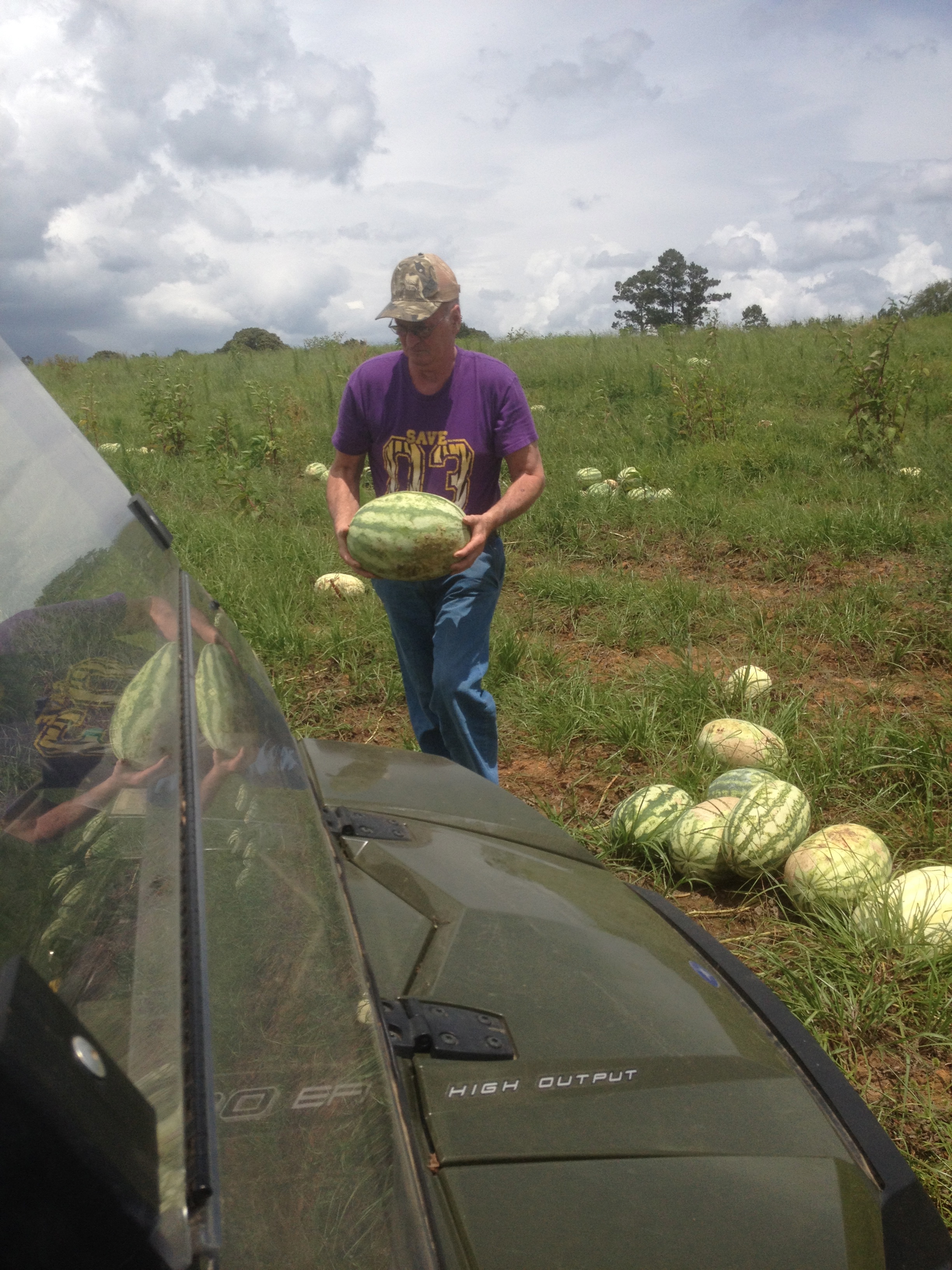 I went last weekend to replace the flowers on my mom’s grave – from the red roses of winter to the sunflowers of summer – her flowers were definitely in need of a pick me up. While I was there I was able to get on an ATV with my uncle and head to a neighbor’s farm that was overflowing with tomatoes, eggplant, peppers, corn, and watermelon. “Take what you want,” the farmer said. It was in a word – C R A Z Y!