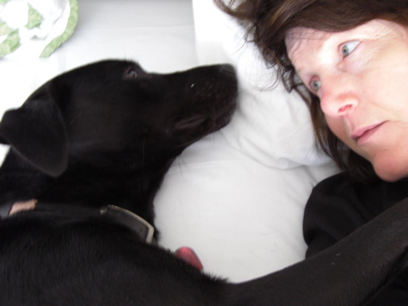 I was walking through Target for yet my umpteenth baby necessity run (there is another list started already – been there so many times my bank called thinking it was fraud) – and I turned onto the pet food aisle and had this sudden attack of missing Loca. Last I heard she was curled up in the Womb chair and had chewed the note of condolence that a friend had sent. She misses me and I miss her! One time when my mom was housesitting, she tripped and fell in the bathroom and Loca curled up next to her just like this and stared into her eyes until she got up. She never could get over that – neither can I!