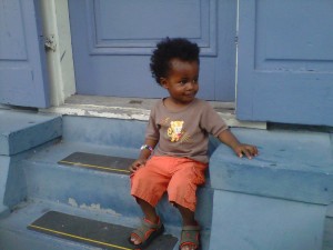 On the way from the truck to the restaurant we had to stop at every doorstep and try it out – we had to sit on it, we had to stand on it, we had to try to jump off of it:
