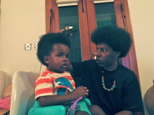Yesterday, a good friend of ours came over to cut Tin’s hair. I have been taking him to this really cool salon in the French Quarter but honestly nobody there wears their hair natural – its all about buzz cuts for boys and relaxers for the ladies, so I called the one person I knew who could deliver on the afro buzz – Darrin Butler to the rescue! Not only does he sport the best fro around but he is an artist and his eye is impeccable.