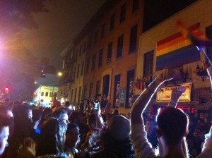 My talented niece sends this from in front of Stonewall the night New York decided to allow gay marriage: