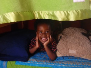 Yesterday, when Tin got home from school he didn’t want to go outside, he wanted to build a tent out of his bunk beds. So I tucked the covers into the top mattress and while I was doing that he got involved with his train and started choo choo’ing around the room. So I snuck in behind the tent. I thought I’d be there for a moment only but then I was fascinated by watching him from the little crack I could see out of. He had pushed the train into a road block and was trying to figure out how to get around it. So he got up on the chair and stood there surveying the problem. (He’s not allowed to stand on furniture.) A moment later Tatjana called to me, but I didn’t answer but it scared Tin so he tried to jump off but brought the whole thing down crashing to the floor.
