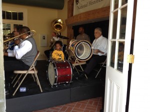Tin and I went to the Music for All Ages brass band in Perserverance Hall in Louis Armstrong Park where Sunpie Barnes has taken a shine to Tin; Bruce sat Tin on his lap and played drums and then played piano with him while the band was belting out Lil Liza Jane and Jambalaya.