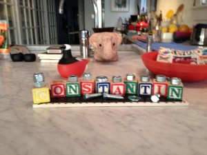 We went to Tin’s friend’s birthday party last night and Tin was about to burst he was so happy to be going to a party, going to eat birthday cake, he wanted to bring his clarinet and serenade her. Instead he ended up breaking part of her present off because he was so excited! Oh well. She made him a lovely menorah – which is just perfect – as frugality was stopping us from adding one more to our collection this year, so it came anyway – typical of how this whole year has gone – the universe (or in this case friends) provide.