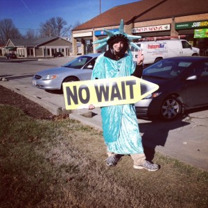 I walked to the hospital today because I sorely needed exercise and along the way I ran into this character on the mall boulevard as we have come to refer to it because it has every fast food chain you can imagine and then some.