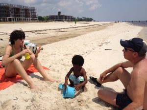 The beach was ours save for a group of kids who appeared to be immersed in some circular kumbaya a ways from us but then towards the afternoon the beer arrived and so innocence lost yet again. We instead made castles, swam in the copper colored water, ate our sandwiches and sticky rice and chilled and then got in the truck and drove home – everyone napping except (hopefully) the driver.