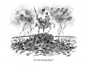 Lee Lorenz’s comic showed up in the New Yorker and it was as timely as any to describe the beginning of our new journey. And so I say my problems may be small in comparison to those who suffer more, but they’re my bumps in the road, and I’m a sensitive creature who feels the highs and lows dearly and who offers a profound response each time.