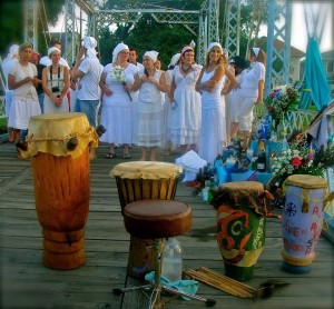 Every year on the eve of St. John’s Day, a voodoo priestess and her followers gather on the Magnolia Bridge over Bayou St. John to offer blessings for the crops. It used to be Marie Laveaux, the Voodoo Queen of New Orleans, now it’s Sallie Ann Glassman, the Voodoo Priestess of New Orleans. Michael Domenici, WWOZ host of the New Orleans show took some cool photographs this year.