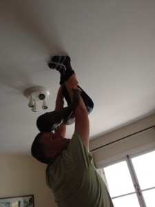 Tin tried walking on the ceiling.