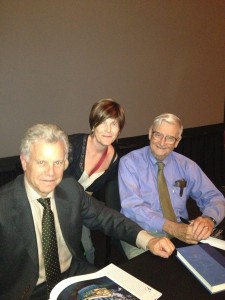 Last night, I went to hear E.O. Wilson speak about a book he had just finished about his hometown, Mobile, Alabama. He said he has spent his adult life at Harvard and has never felt home there or in the surrounding Boston area because it is too fragmented, too big, and I would add, not natural enough. Instead he insists he is an Alabaman, who happens to be a Harvard professor. Afterwards, as I was having him sign my books, I had my photo taken with the great naturalist and the artist of the collaboration, Why We Are Here, Alex Harris.