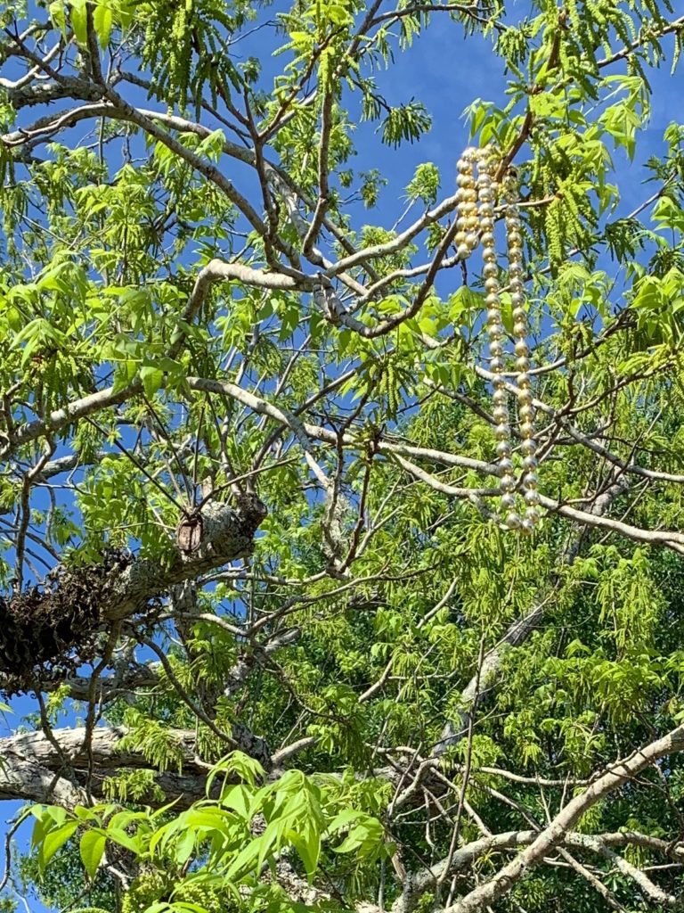 I moved to Mississippi in the summer of 2018. This morning, the warm temperature dipped to the 50s, so I went for my walk later than usual. I saw something glittering from a tree and looked up to see gold Mardi Gras beads caught in the branches. Bay Saint Louis is so close to New Orleans, some refer to it as New Orleans East East. It feels like an Andy Griffith version of New Orleans. I stared at the beads – in February this year, I had marched down this same street with the Krewe of 100 WOMEN DBA for the Fat Tuesday parade.