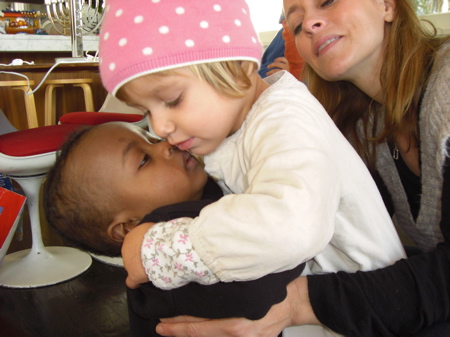 I’m already worried that I’m not going to have enough of this time with Tin – I feel like I’m making up for 9 months and getting to know you and his little fingers and toes are just delicious and his butt – please, he has the best butt I’ve ever seen. But already a good looking girl came along and he was swept away – here is Eva making the moves on him – older woman indeed.