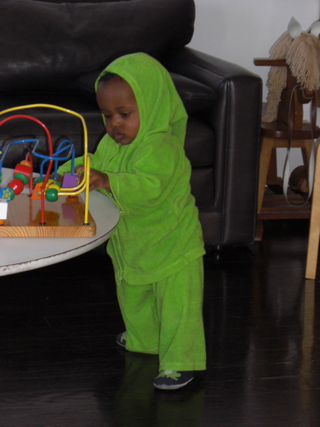 We’re so pleased that Tin will grow up not just with racial diversity but with real cultural diversity as he will travel with us, become part of our friends who come from many countries, and he already has very culturally diverse mommies. So it is with great pleasure that we dress him in the outfits that are coming to him from around the world.