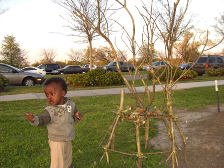 I keep thinking about the article in the NYT magazine about Treme when it said that New Orleans is all about the moments. Like the moment when we were about to come out of the park yesterday, and I noticed, beside the white stairs that are in the meadow that are an installation post-Katrina that signify the steps home, a gold chair made of twigs and leaves. I did a double take. Today Tin and I went to go investigate and it was still there, a gold chair. The same people who would spend an entire year sewing tiny little beads on a costume they will wear only once are capable of making a gold chair out of twigs and placing it, unfettered, in City Park.