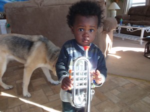 Our beach trip has been an exploration in fruit eating – Tin has eaten and asked for apples and mangos and eaten every bite. He was strictly an applesauce boy but he is venturing out here on the beach with the fresh air and sun making all of us very content. He is also jamming with Dizzy Gillespie and Louis Armstrong and Trombone Shorty. We watched him perform for about forty five minutes last night and he was unstoppable. No one was paying him for his performance either.
