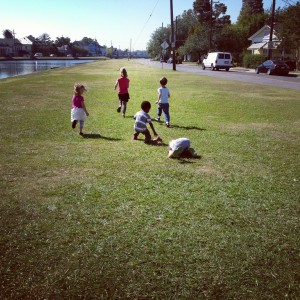 The super storm on the East Coast seems so far away and removed from our lives down here in New Orleans as we regale in the beauty that is today. Tin was out of school so a bunch of his friends came over and we made pesto fresh from the garden, and we ran races on the bayou in the sunshine, we inspected spider webs on the Magnolia Bridge and we ate snacks and played…